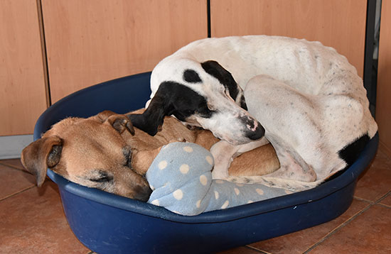 Ihr Überleben und ihr neues Zuhause bei uns verdankte Cigale einem tragischen Vorfall. Nach dem Tod von Pepper, unserer Podenco Hündin, trauerte unsere Selene, eine Epagneul Breton so sehr, dass wir beschlossen die alte Bretonin Olympia aus einem französischen Tierheim aufzunehmen, die es aber nur im Doppelpack zusammen mit dem kleinen Kiki, ein Basset Fauve de Bretagne gab. Einen Tag bevor die beiden alten Hunde zu uns kommen sollten erhielten wir die Nachricht, dass Olympia morgens tot in ihrem Zwinger aufgefunden wurde. Ich habe stundenlang geweint. Dann fasste ich einen Entschluss. Wir hatten die Zusage gemacht beide Hunde aufzunehmen. Ich rief in Frankreich an und fragte, habt ihr eine andere Hündin, die alt ist, egal welche Rasse, die keine Chance auf Vermittlung hat und in der Tötung sitzt, die wir anstelle von Olympia aufnehmen können?