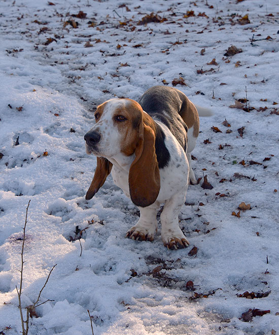 Nico war kein „Gnadenhofhund“, für uns war er ein „Wunschhund“. Wir beide hatten schon früher Bassets kennen und schätzen gelernt. Er mag uns Menschen, unsere Katzen und alle Hunde, egal wie groß sie sind. Er ist ein kleiner Tollpatsch und wenn er nachts durch die Hundeklappe nach draußen geht und wieder ins Schlafzimmer zurückkommt, dann erkennt man ihn an den unverwechselbaren Geräuschen die er macht, wenn er über den Boden schlurft. Er ist eben ein echter „Hush-Puppy“.